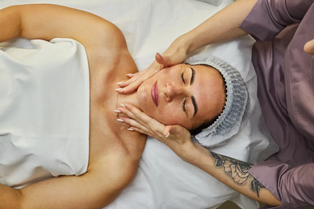 - Для тела: лечебный, лимфодренажный или антицеллюлитный массаж, а также аппаратная процедура дерматония для коррекции фигуры и уменьшения объёмов.